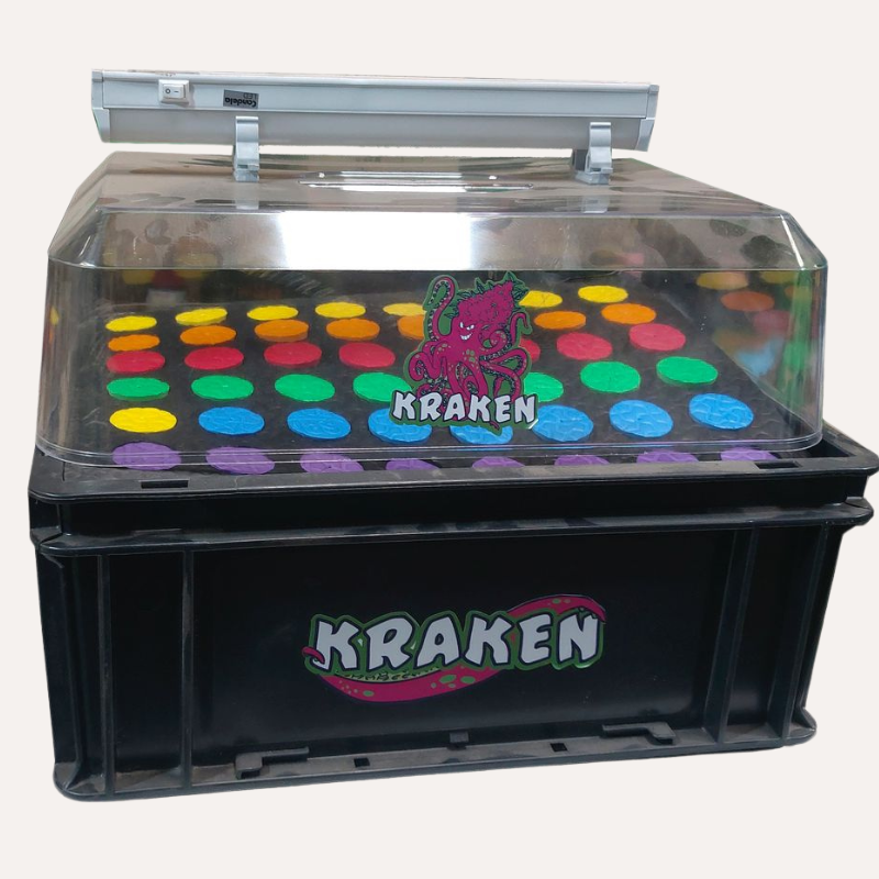 La Aeroclonadora Kraken 48 Esquejes Completa es el sistema definitivo para la propagación de esquejes de forma rápida y eficiente. Diseñada con tecnología aeropónica, proporciona máxima oxigenación y humedad para un enraizamiento veloz y saludable, reduciendo el estrés en las plantas y aumentando la tasa de éxito en la clonación.
