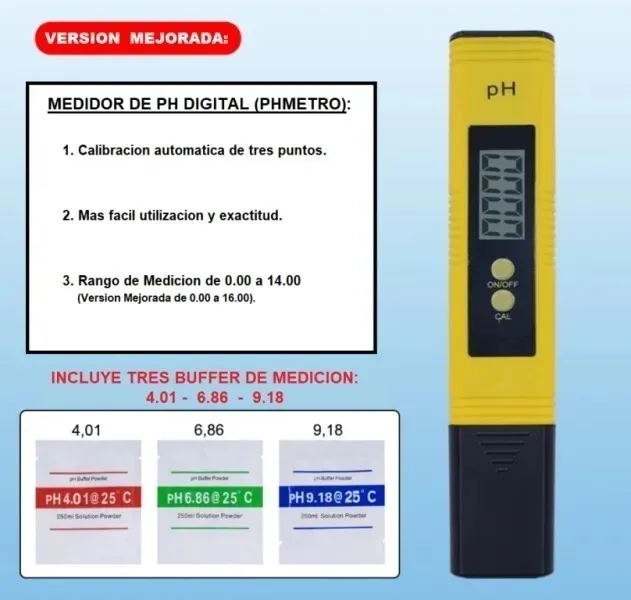 Si querés un cultivo exitoso, el pH es clave. Con el Medidor de pH Digital, asegurate de que tus plantas absorban los nutrientes de manera óptima. Es fácil de usar, preciso y confiable, ideal para medir la acidez o alcalinidad de tus soluciones nutritivas en segundos. No dejes que un pH desajustado arruine tu cosecha, ¡medilo y tené el control total de tu cultivo!