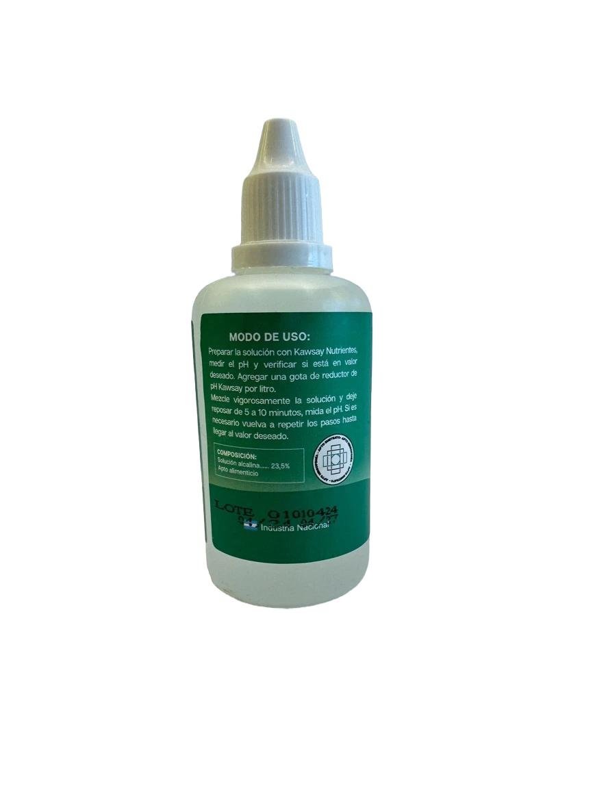 3️⃣Si el pH está más bajo de lo que indica la tabla orientativa de cultivo tirá algunas gotas de pH+ Regulador de PH de Kawsay y mezclá bien.