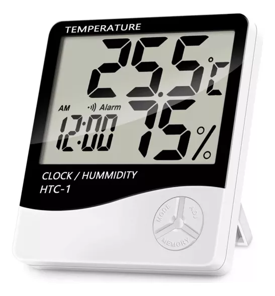 Además, incluye función de memoria para registrar valores máximos y mínimos, reloj con formato 12/24 hs y alarma programable. Su precisión y facilidad de uso lo hacen perfecto como termometro ambiental, termómetro higrómetro o simplemente como medidor de temperatura y humedad en casa, oficina, indoor o invernadero.