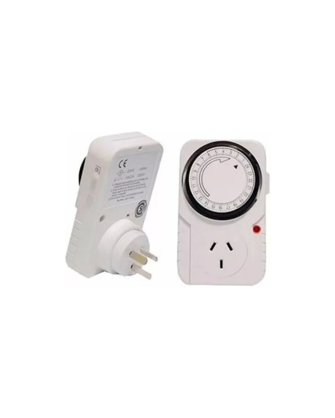 ⏱️ Timer programable analógico para automatizar luces y equipos del cultivo. Simple, confiable y esencial para mantener horarios estables.